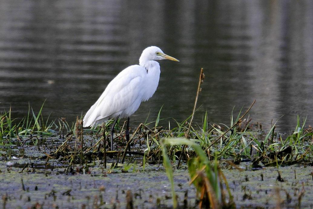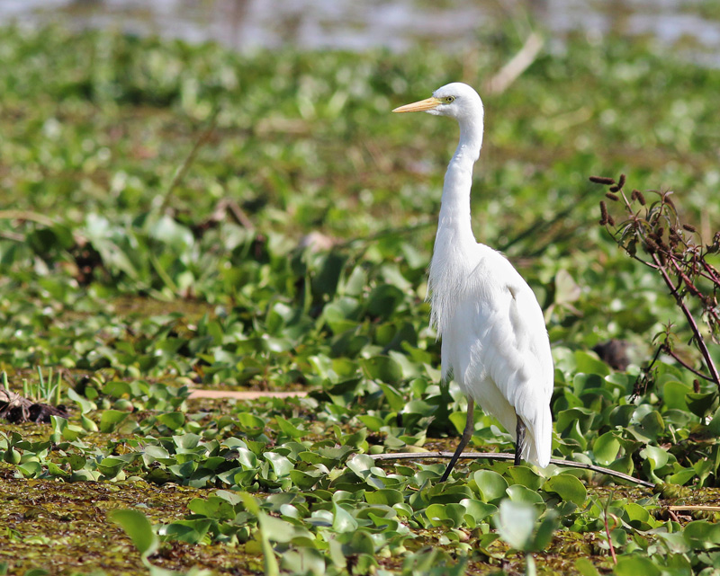 Beskrivelse: Mellemhejre ligner en blanding mellem Sølvhejre og kohejre, som det ses her. Den har kortere hals og næb end Sølvhejre, men hoved og næb leder nærmere tanken til Kohejre