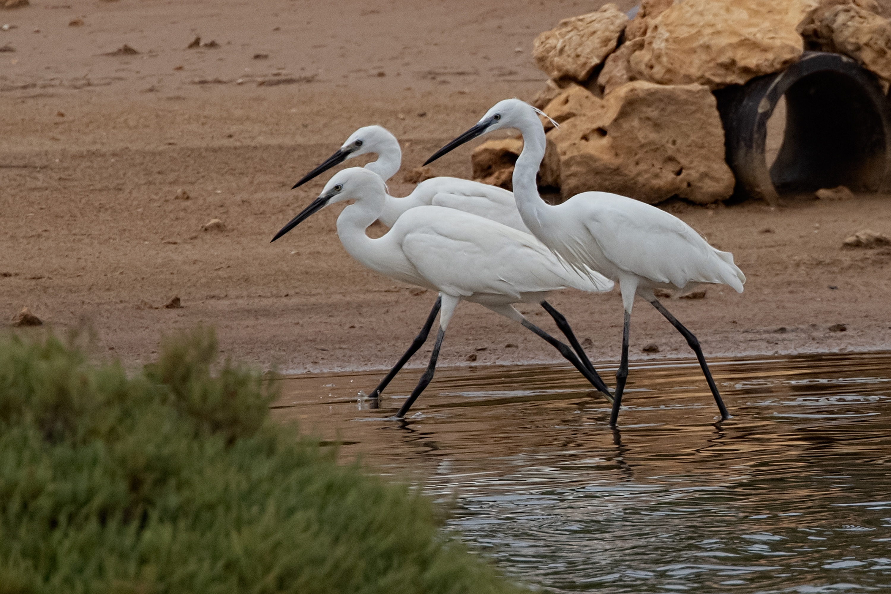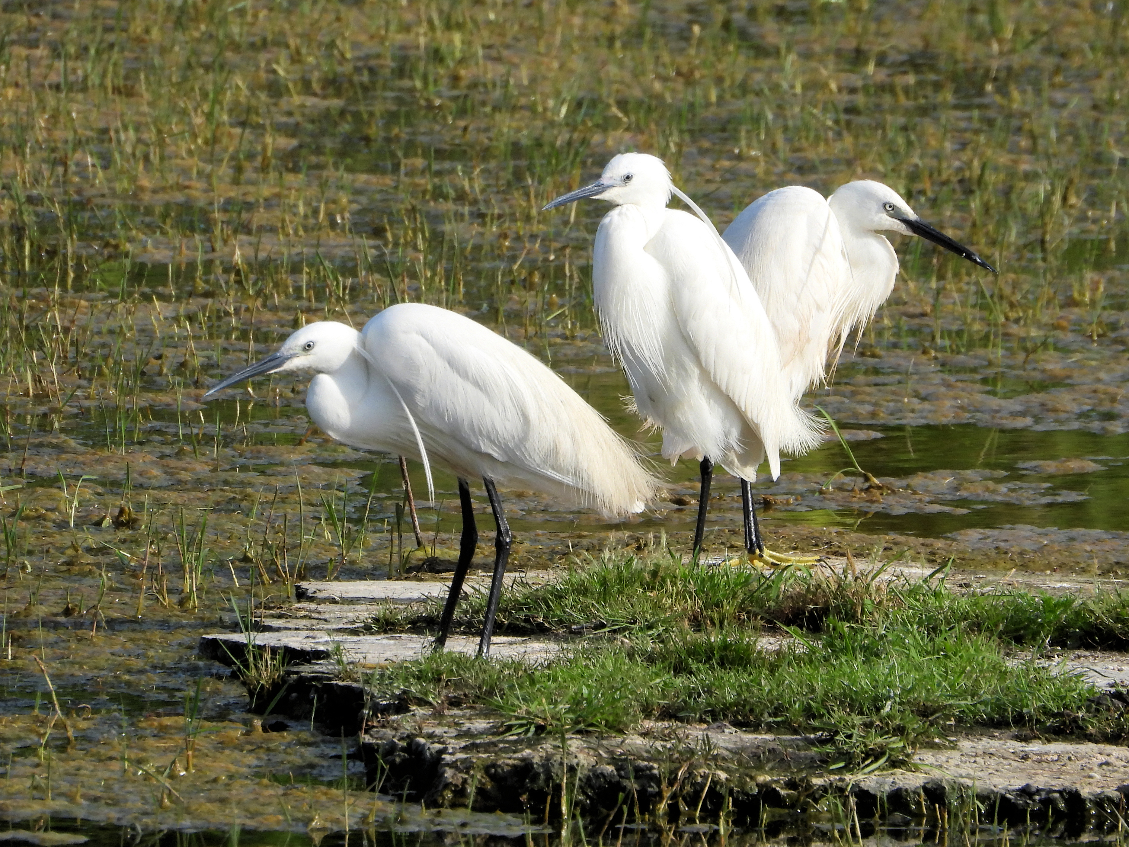 To Silkehejrer fouragerede tæt sammen med en Sølvhejre, hvor en meget forskellig forageringsmåde kunne sammenlignes, i hvert fald under disse samme forhold i dag .