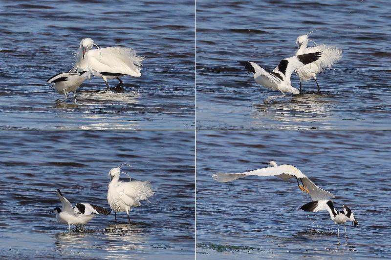Beskrivelse: Selv om det ser ud som om, at Silkehejren har overtaget, var det alligevel Klyden, der hver gang gik af med sejren og fik jaget Silkehejren væk.
