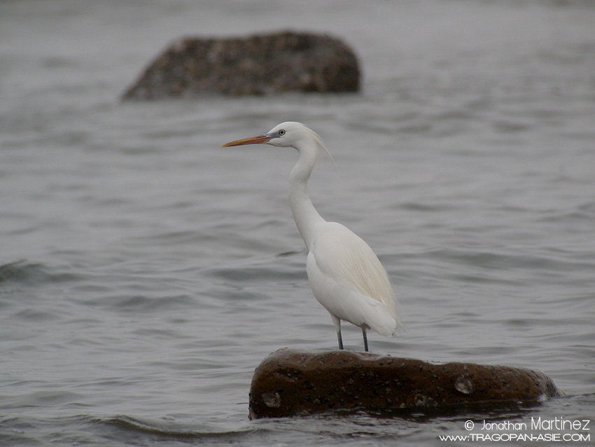 Sammen med silkehejre var denne Chinese egret lidt større med kraftigere, mere revhejreagtigt næb, lysere undernæb, lange strittende nakkefjer og lysere ben.