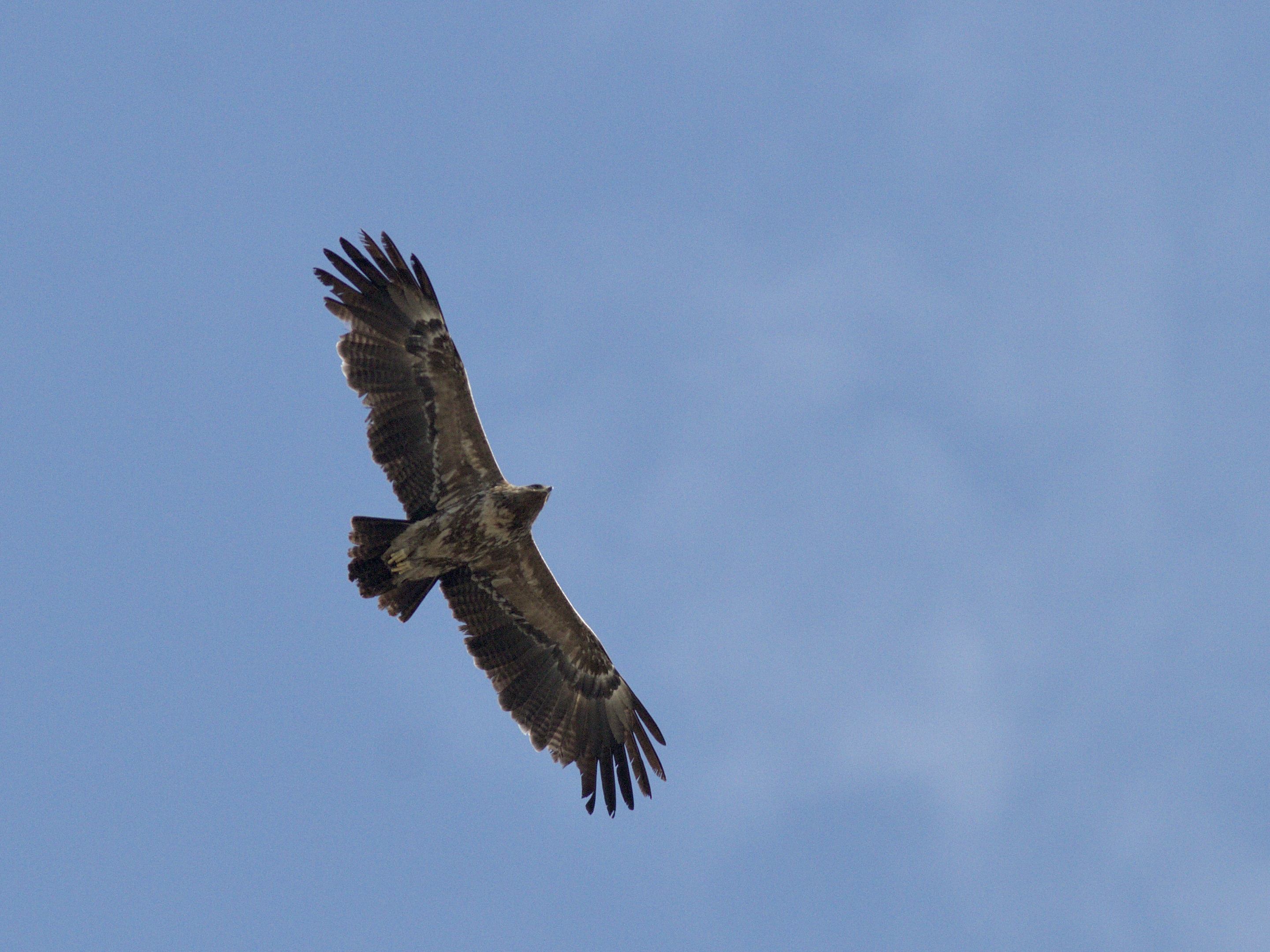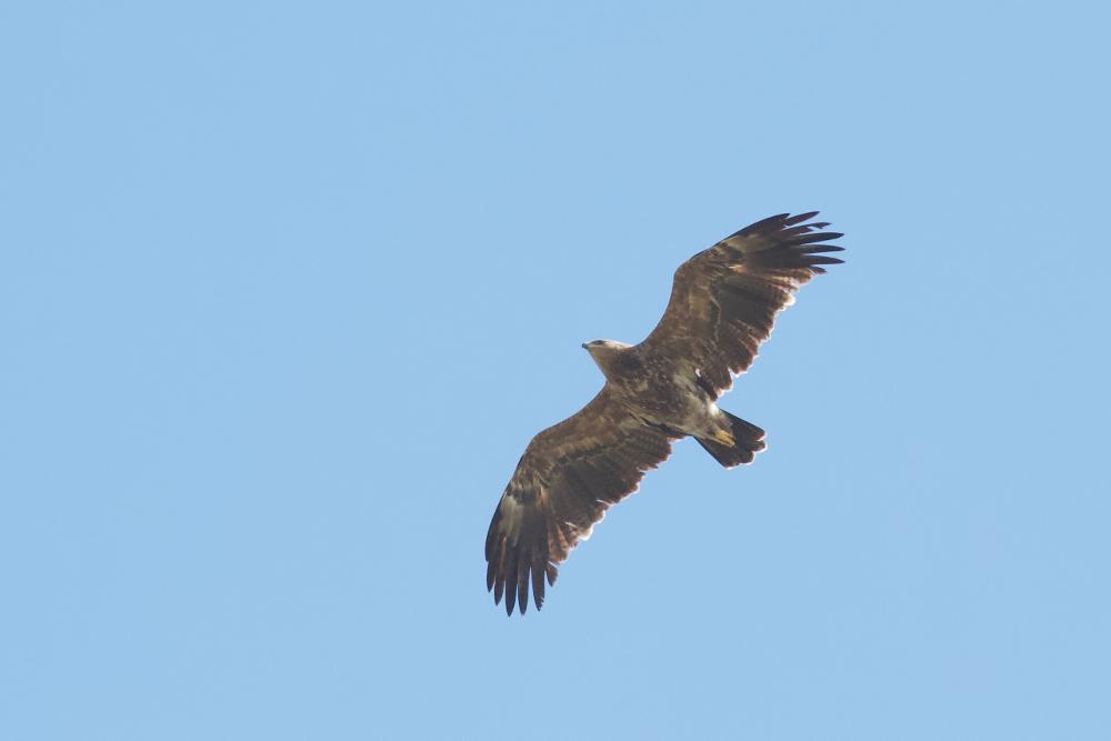 Beskrivelse: 1 ud af 2 Små Skrigeørne der lavede opvisning lige over vore hoveder. Også Høgesanger, Flodsanger, Pungmejse, Pirol, Fiskeørne, Havørne, mv. denne morgen.