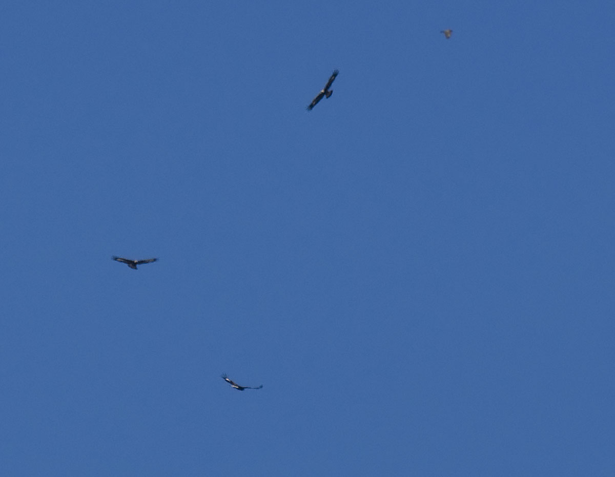 Beskrivelse: Disse 2 smukke unge (juvenile = 2K) Kongeørne viser fint variationen i de hvide vingefelters udbredelse i denne aldersklasse. Udbredelse af hvidt synes at gå igen i den efterfølgende generations fjer. Dette betyder, at alle yngre (ca. 5K minus!) har tydelige hvide vingefelter, der varierer individuelt. Med mindre man kender individets alder fra ringmærkning eller ved at have fulgt den gennem flere år, man den enkelte fugls udbredelse af hvidt i vingen ikke bruges til præcis aldersbestemmelse.