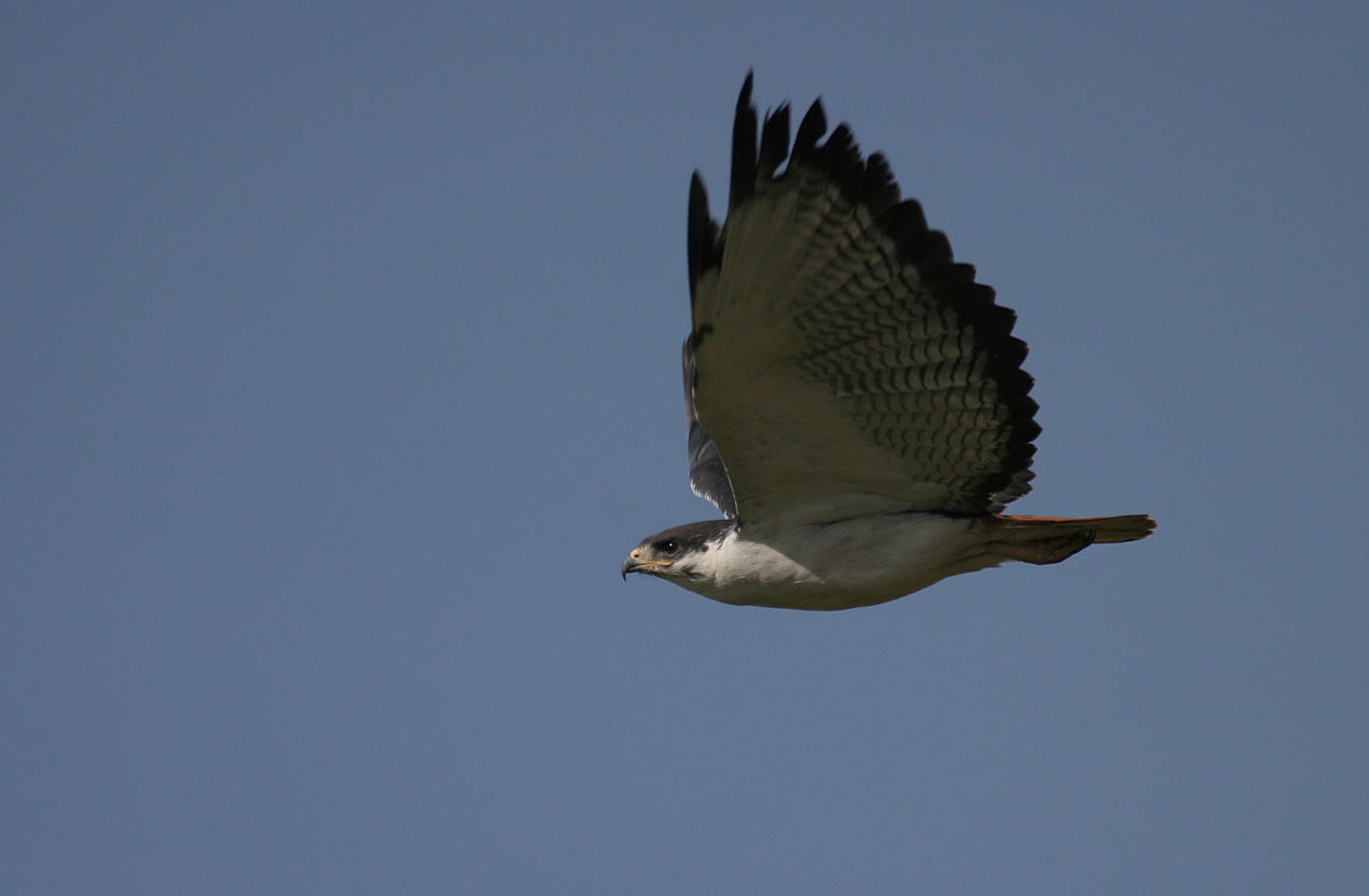 Jeg studsede også lidt over Black Sparrowhawk - har du overvejet Augur Buzzard? Gammel fugl, lys fase. Men stadig med rester af mørke pletter på kinden fra ungfugledragten. Synes godt det kunne ligne sådan en.