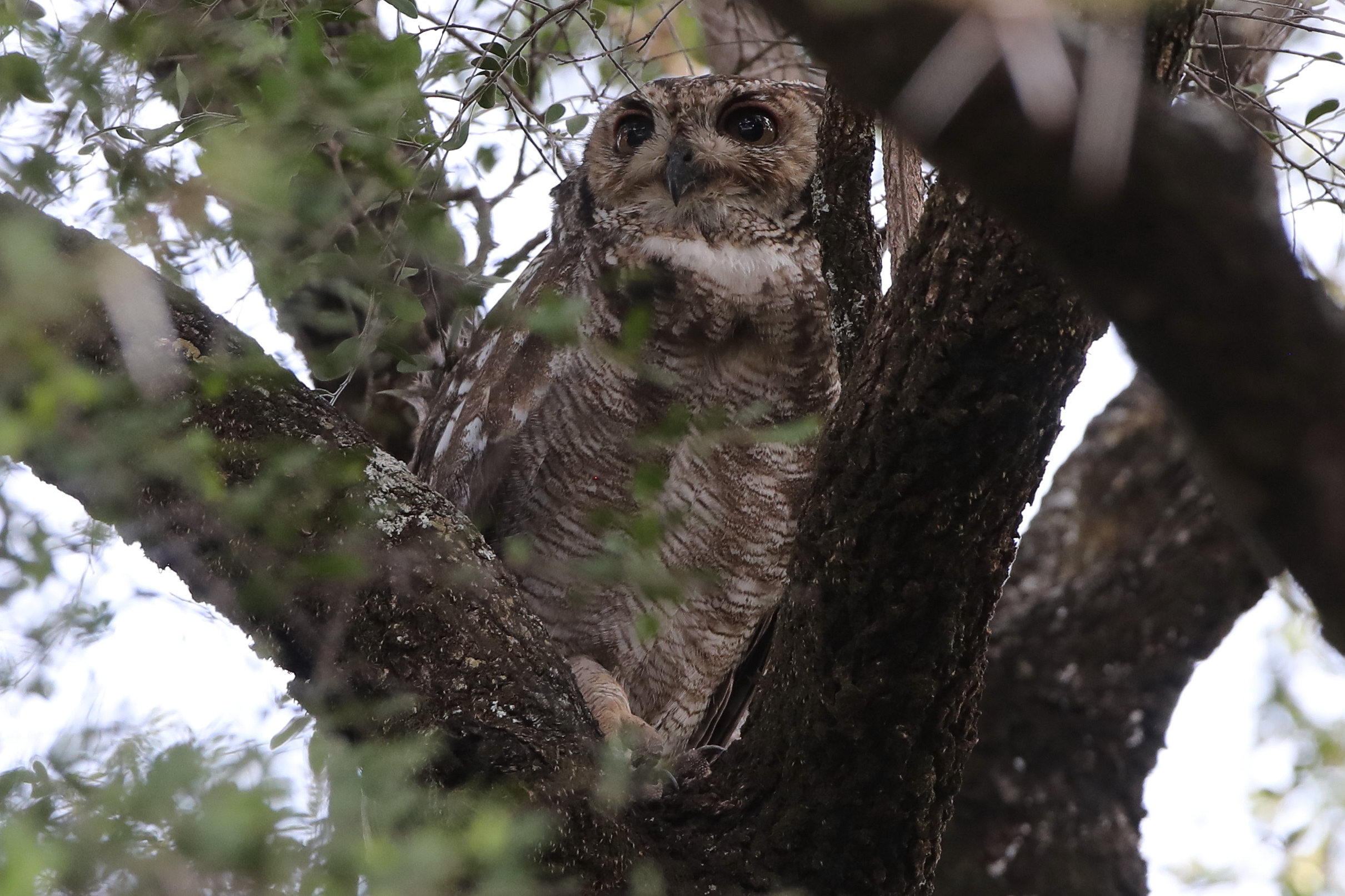 Ja, det kræver luck. For det første er uglerne pænt svære at finde, og for det andet stryger de ikke lige fra træ til træ hele tiden. Heldigvis var der en masse termitter i luften denne aften, så der var tre spotted eagle owls, to lannerfalke og en masse lærkefalke og sorte glenter ude efter dem :-)