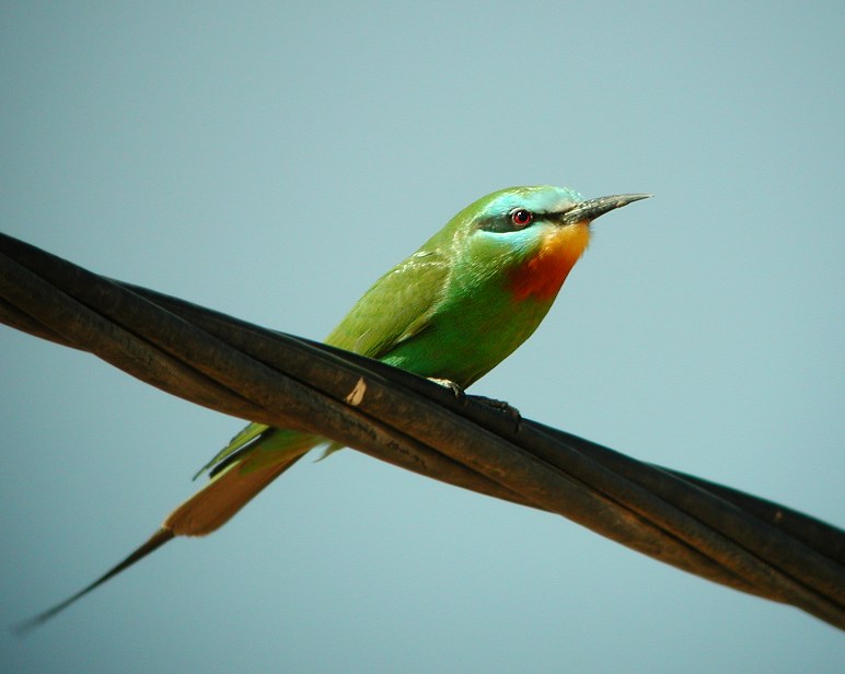 Beskrivelse: Overraskende ca 30 Grønne Biædere fouragerede og rastede om aftenen i udkanten af Rissani, sammen med enkelte alm. Biædere.