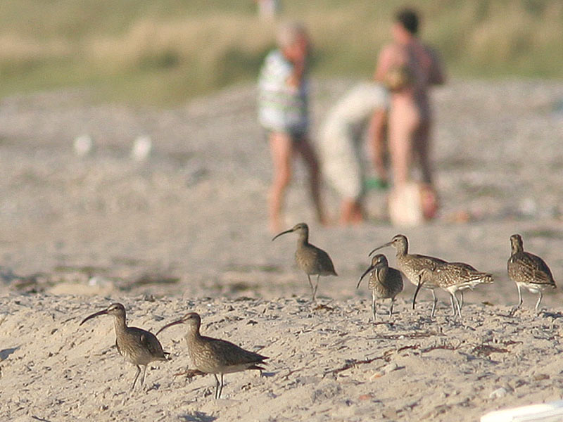 Eftersom jeg mest focuserede på spoverne kan jeg ikke bekræfte ovenstående påstand, men jeg mener dog, at der var tale om en tækkelig,omend noget stram badedragt. Billedet er derfor ikke i klasse med med det prægtige nudist-foto, man kan se i et nummer af Dutch Birding for nogle år siden, hvor en Sneugle vises mod en baggrund af nogle ældre nøgne hollændere.