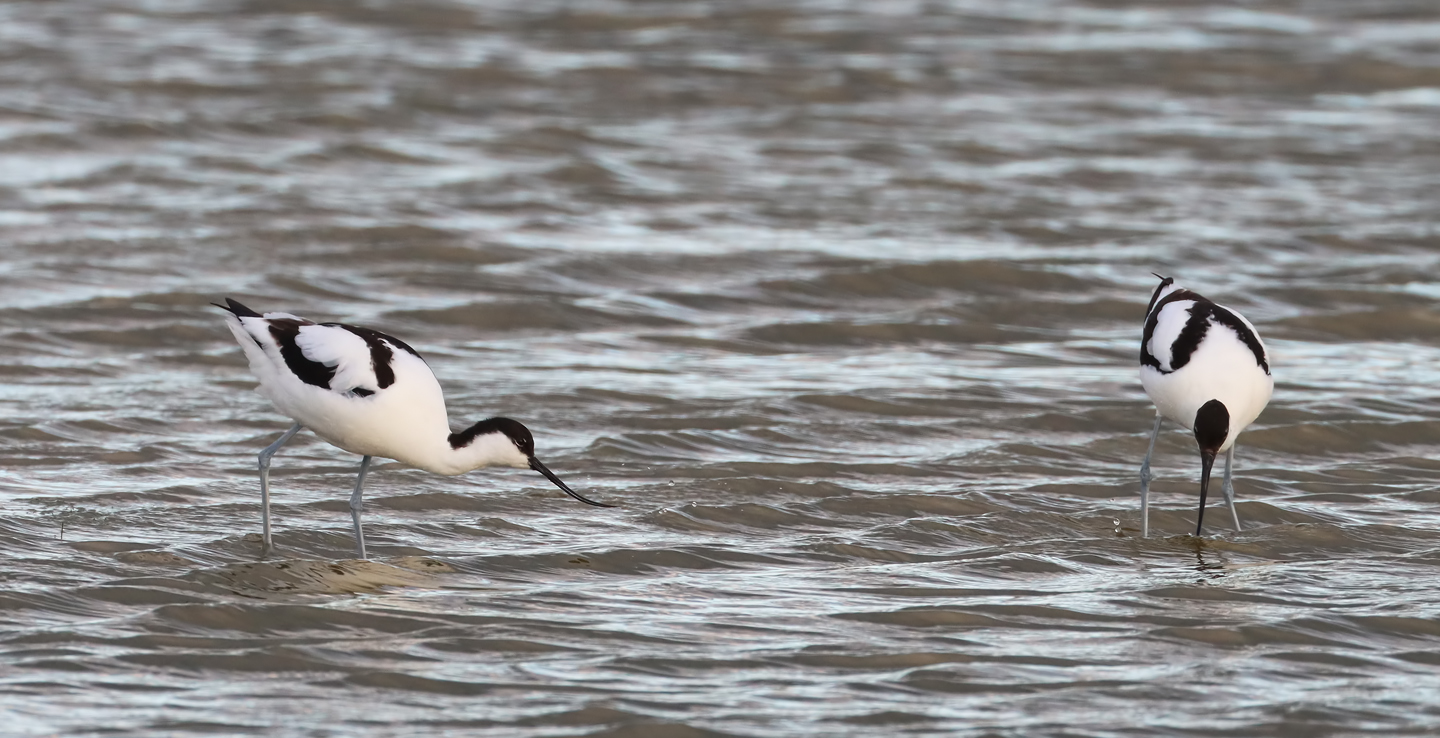 Beskrivelse: Typisk fourageringsmåde hos sneppeklirer: næbbet dybt nede i dyndet og med hurtige symaskinebevægelser. Artsbestemmelse baseres her på hvidskællede brystsider, udbredt rystbrunt på hale undersiden og at halespidsen går ud bag vingerne.