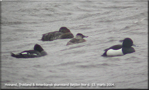 Godt billede forøvrigt - overraskende at se hvor lille skarveanden egentlig er i forhold til de tre andre. Det kunne jeg ikke huske fra den ene gang jeg har set Amerikansk Skarveand.