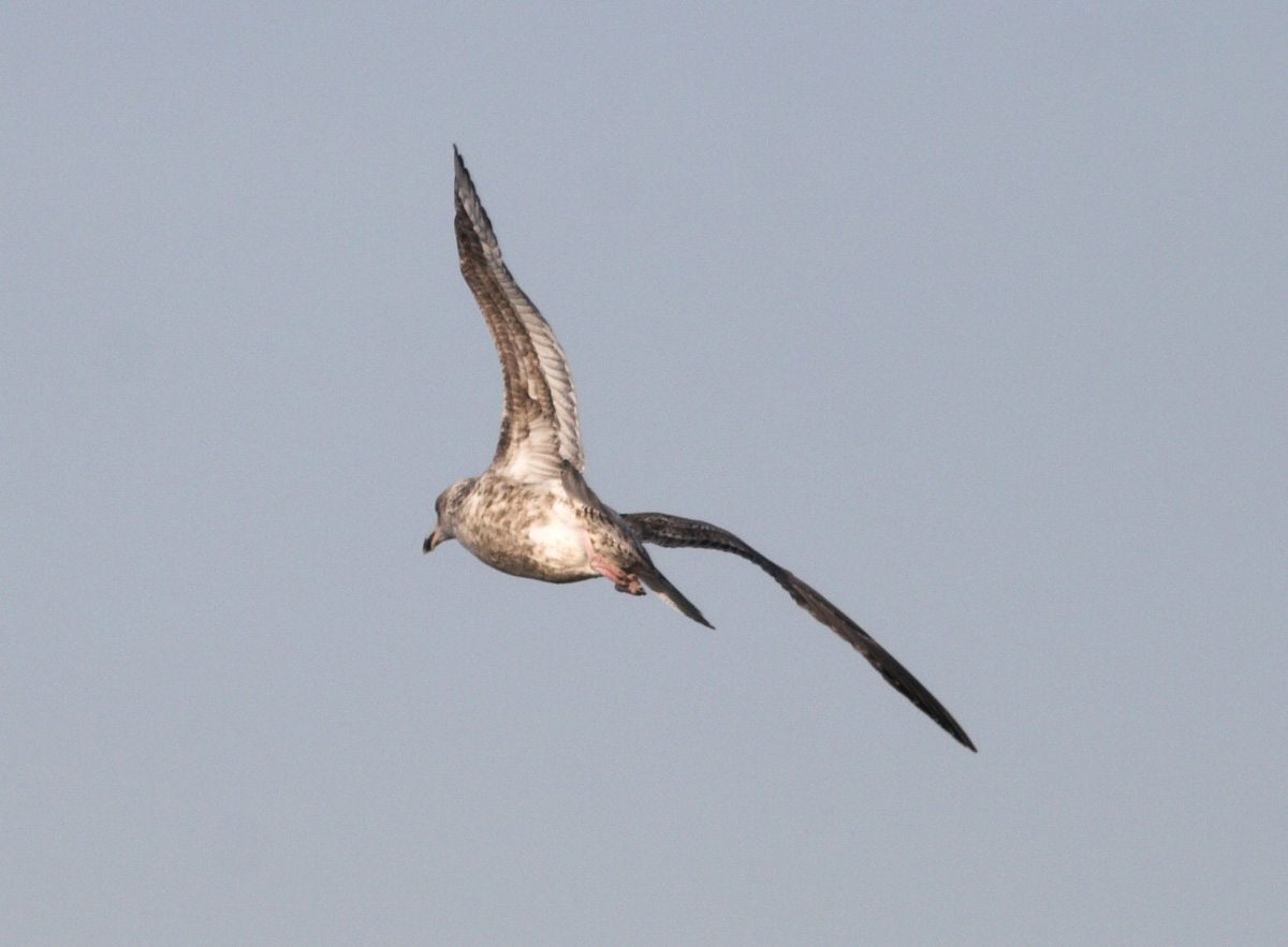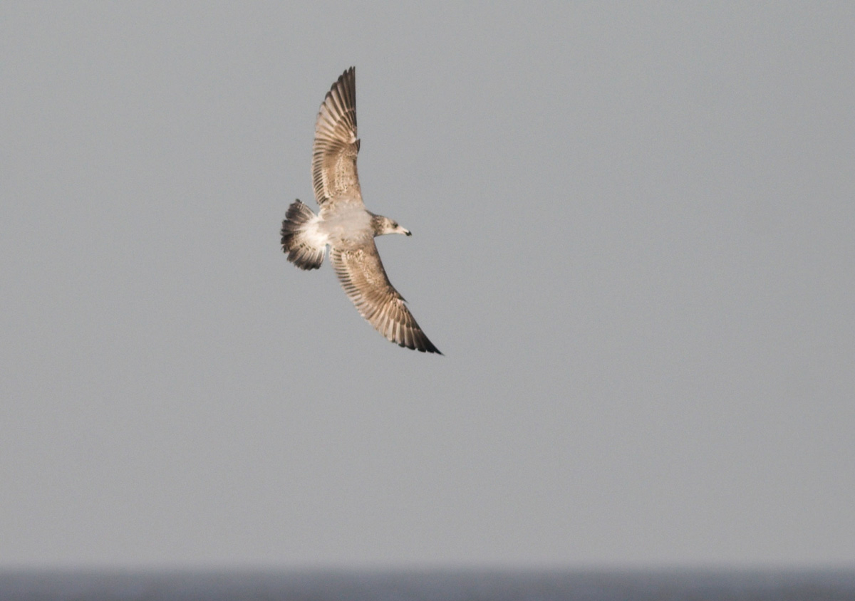Spännande med potentiella smithsonianus, det är ju inte första gången i DK. Verkar vara en 3k fågel som du säger, icke adult tecknade inre hp, ingen vit 'slant' (mirror) på hp10, men finns det något på denna fågel som utesluter Sölvmåge? Även om överlappningen är stor (total?)mellan Sölv och smithsonianus i denna åldersgrupp skulle jag gärna se lite mer av helmörk stjärt, där teckningen på de yttre stjärt fjädrarna kan verka okej som synes här. Kanske också en större utbredning av det ensfägade på tertialerna - med mindre bandning i kanterna. Mer ensfärgade större täckare skulle vara ännu bättre.