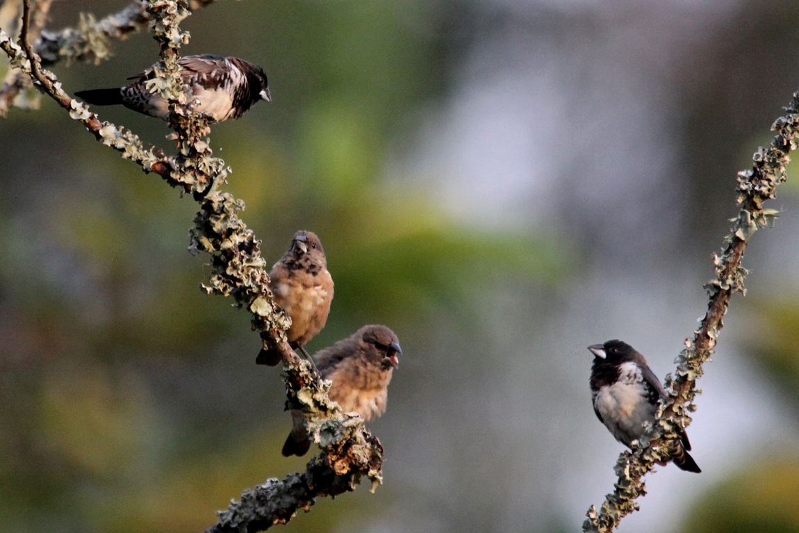Det rødlige på næbbet, det røde hoved og de brunlige (ikke sorte) underhaledækfjer er karakterer for arten Red-billed Firefinch (L.senegala). Det lille billede af en hun/ungfugl er sandsynligvis samme art - det røde felt mellem øje og næb er dog kun svagt markeret.