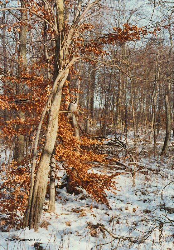 Beskrivelse: Midt på større opdyrket skovlysning spankulerende og puslende om fjerpragten.