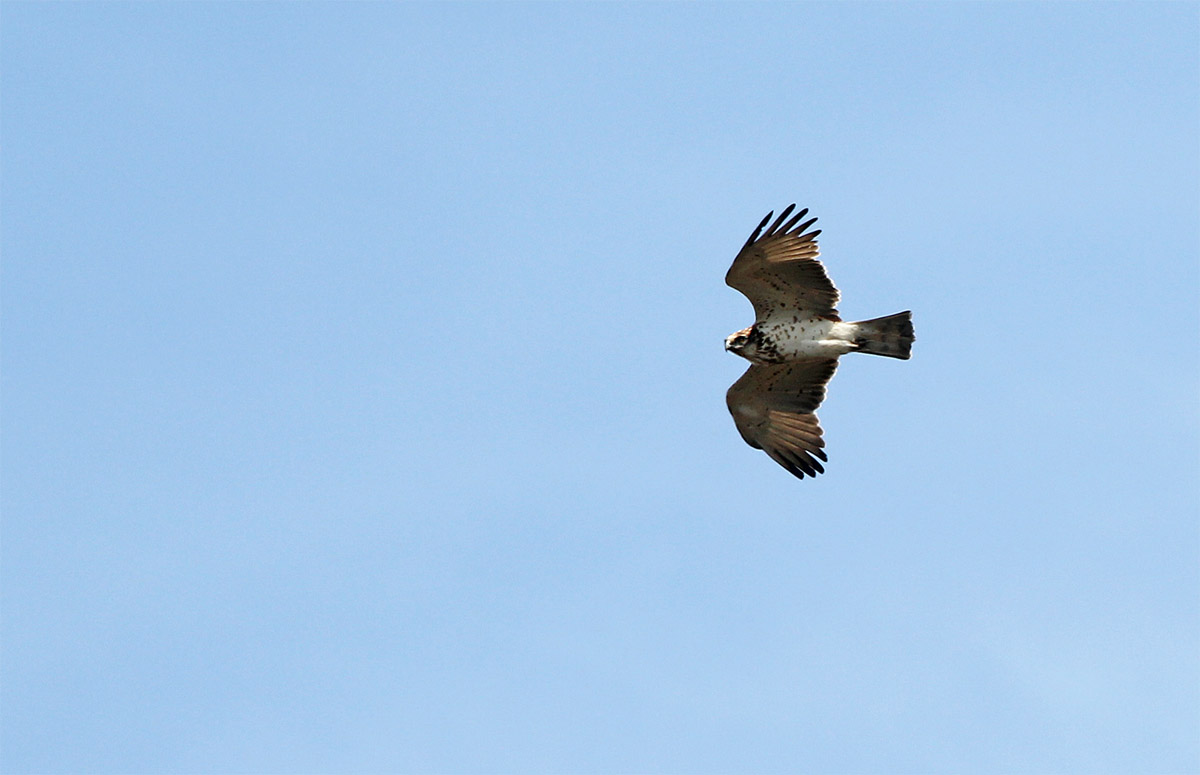 Beskrivelse: Underside af fuglen - lys type slangeørn, antageligt 3k. Opdaget kl. 0955 i den sydøstlige del af hedeområdet - samme fugl, som dagen før blev meldt ud som mulig steppeørn