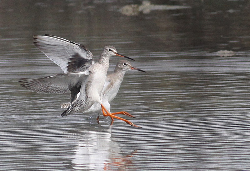 Beskrivelse: Forskellene i hoved- og næbtegning mellem de to arter, der kan forveksles af de mindre erfarne fremgår fint her: Sortklire har tydeligt hvidt øjenbryn og rød stribe langs næbbets underkant, Rødben fremstående hvid øjenring og kortere, tykkere næb med rødlig basis, og uden Sortklirens fine lille vanddråbe i spidsen.