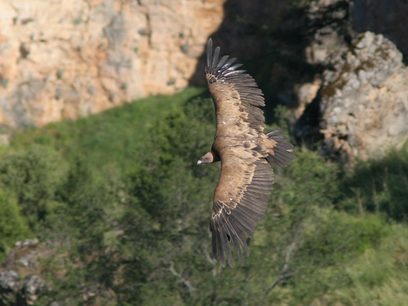Beskrivelse: En af centrale Spaniens perler er klosterruinen Ermita de San Frutos, der ligger ovenfor en slyngning i en flod. Skråningerne her har en stor koloni af gåsegribbe - og enkelte ådselsgribbe, og giver er langt mere uforstyrret indtryk af gribbene end de traditionelle steder i Monfragüe. En fordel ved stedet - der ligger godt 2 timers kørsel nord for Madrid - er steppen de sidste kilometer mod Ermita de San Frutos (ad vejen fra Sepulveda), der er en af Spaniens bedste lokaliteter for Duponts Lærke - en art, man dog skal være mere end almindelig heldig for at se (men høres gør den normalt).