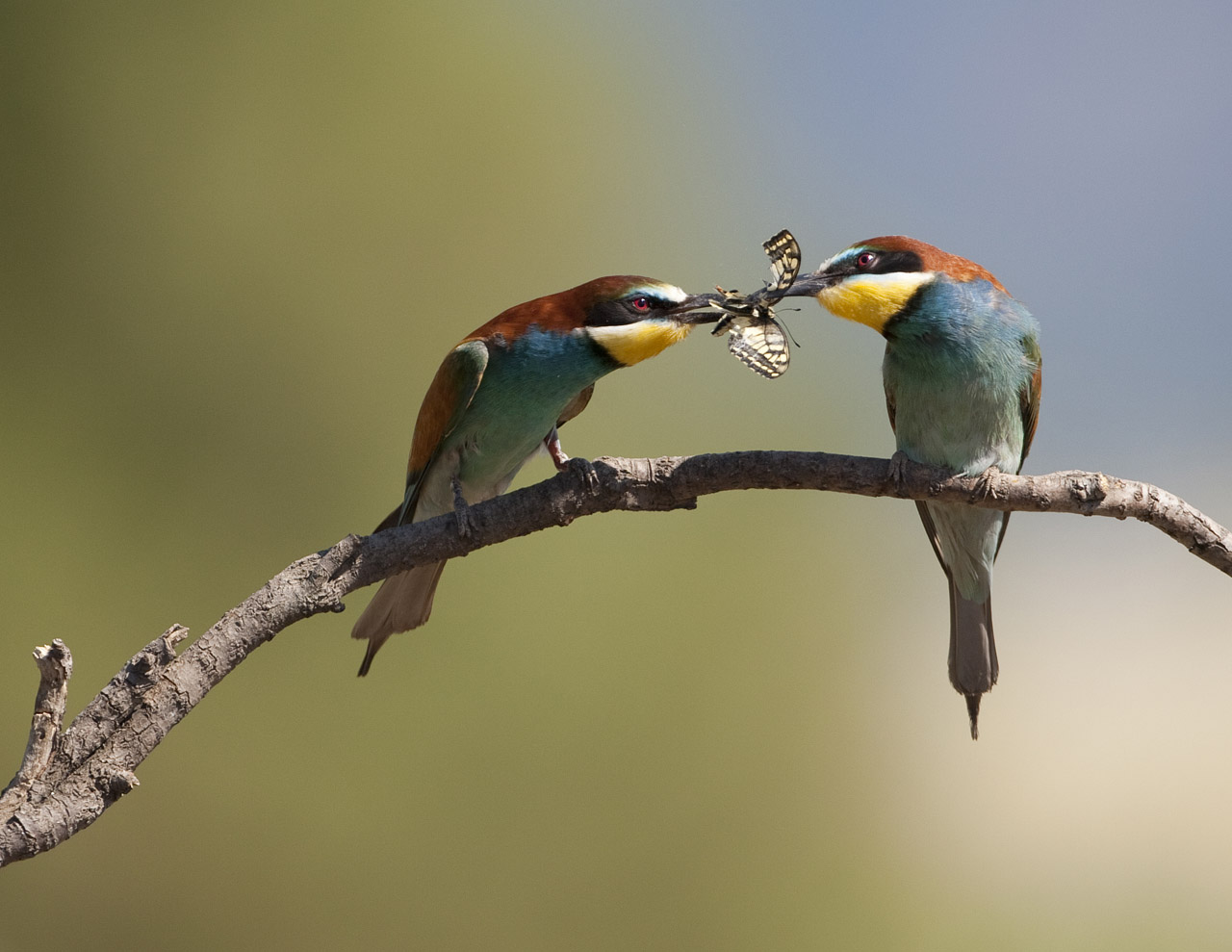 Flot billede med herlig action. Og bemærkelsesværdigt så markant de blå nuancer (som man ellers normalt tydeligt ser på Biæderens bryst) er fraværende på dette foto. Opfattedes fuglene også sådan i felten Klaus ?