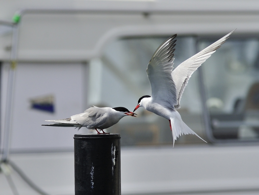 Efterfuglen er ret lille og net for en gråmåge med slankt næb og rundt hoved bedømtes fuglen til at være en hun. Kønsbestemmelse er undertiden mulig, og hanner - som 2 af fuglene i Hvide Sande - er større med en brutal aura, flad pande og meget bredere og kraftigere næb.