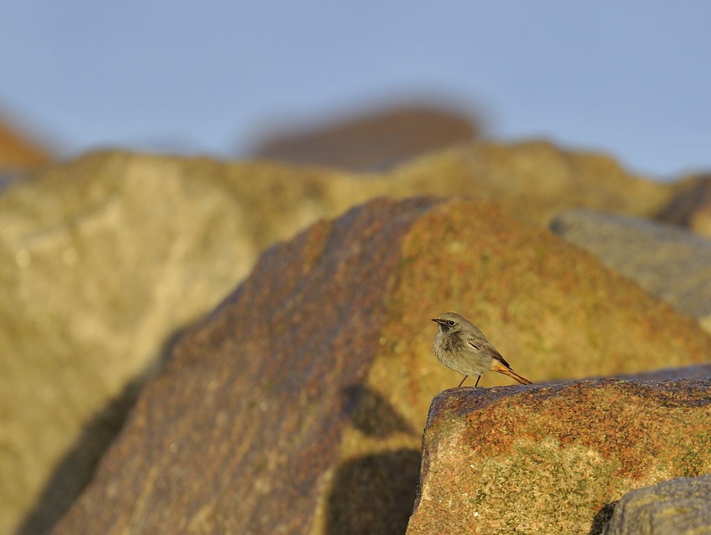 Beskrivelse: DEn langtidsstationære Høgesanger fra Nordhavnstippen - efter 3 timer dukkede den op for at fouragere på bær - forsvandt i perioder for atter at vise sig. Sådan set vældig karakteristisk: stor, kraftig og langhalet, men i dragten forbavsende anonym; den lyst brungrå grundfarve har formentligt gjort, at arten i denne dragt er blevet taget for andre sjældne lyse sangere, f.eks. de lyse gulbugearter.