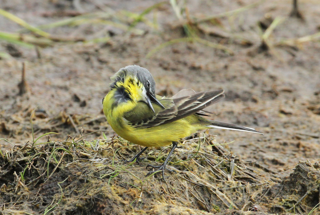 Titel: Med rede materiale i næbet.