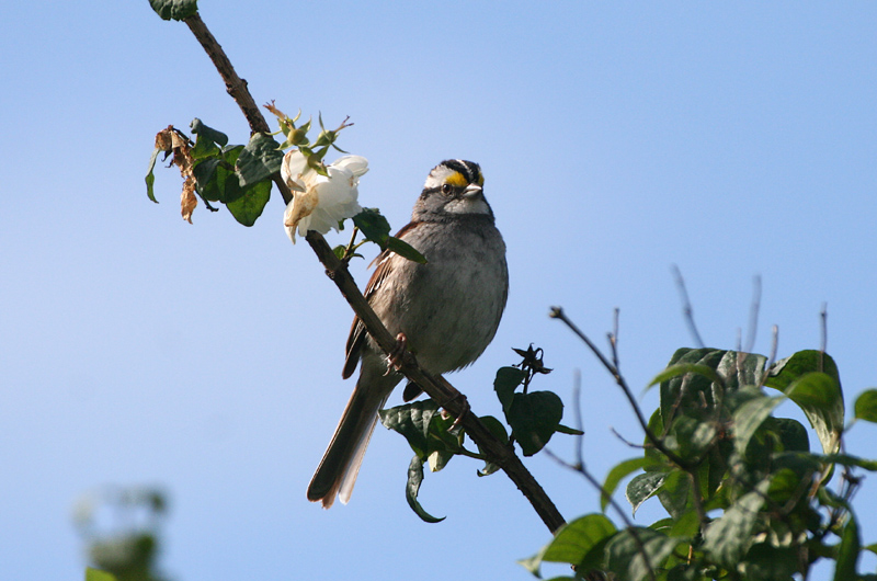 glemte forresten min pointe, det må være varmen, at vi flere gange hørte noget der var i samme tone som fuglens karakteristiske sang, hvor i hvert fald jeg var i tvivl om det var den hvidstrubede. Det har vel været Dunnes tredje transkription af sangen: "Don't be dismayed if all you hear is a whistle followed by "Oh, Say, say, say, say, say"