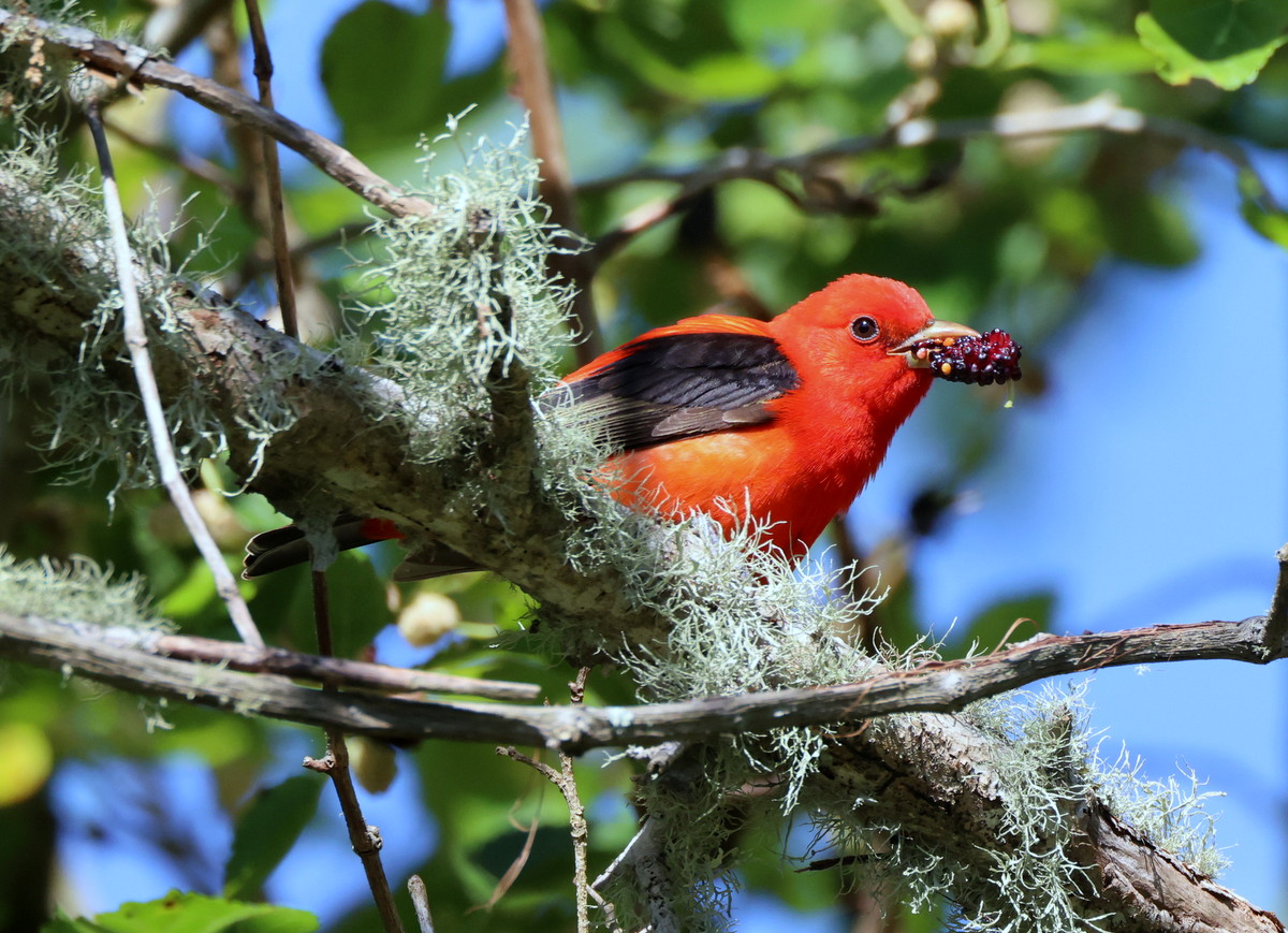 Titel: Re-fueling after a long non-stop migration from i.e. Yucatan (app. 18 hours). The black mulberries are perfect for the purpose - contains lots of sugar.
