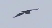 Godt så, nu passer jeg lidt på, men er nettop blevet klar over at der også var bedre fotos på næste side. Jeg bliver derfor (i skam!!) nød til at igen kalde fuglen for noget jeg bestemt tror er en Havørn. Bemærk de hvidlige armhuler og hale, samt det relativt store hovede og næb.