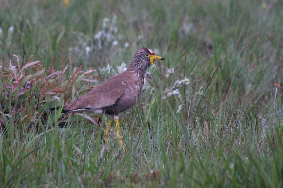 Beskrivelse: Malolotje parken er den østligste del af Drakensberg Mts på grænsen til Sydafrika. Skyerne lettede ikke, fuglene og vi blev lige overraskede, når vi mødtes, men da sigtbarheden var under 5 m, kom vi tæt på hinanden uden ballade. Den lille våde fugl gik troligt foran bilen i 20 min, ledte efter føde i græskanten og blev mere og mere våd. Fuglen er normalt utroligt sky og sjælden her iflg. lokal ornitolog, Pieter de Waal.