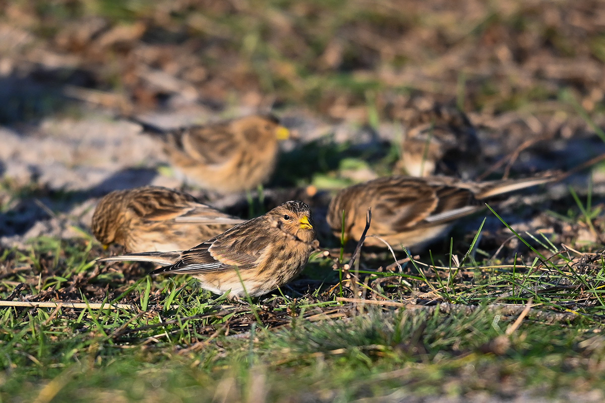 Beskrivelse: Bjergirisk del af flok på mindst 100 fugle