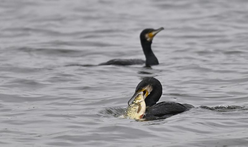 Beskrivelse: Skarv med en ordentlig mundfuld.