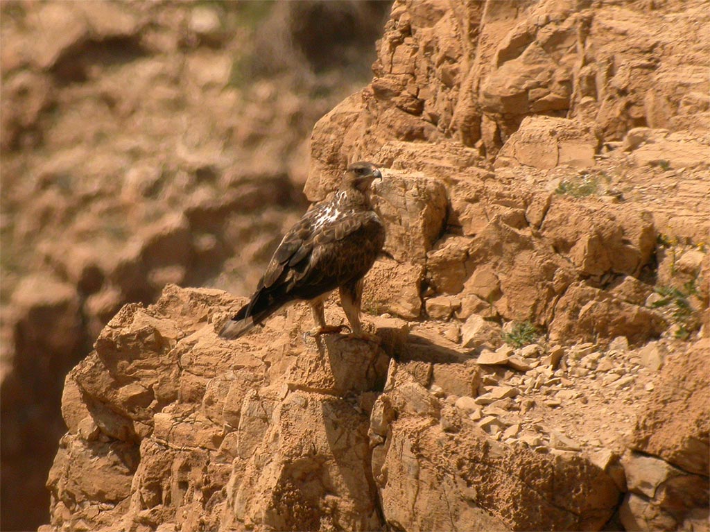 Beskrivelse: This is probably last winters Crested Honey Buzzard returning for its second winter in Eilat, now in adult female plumage. Apart from what can be seen in the pictures we only noted that the bird felt unusually big for a European Honey Buzzard and had broad wings when it flew short distances between the palms. Is it possible to tell what species it is from the pictures? Is the throat pattern possible for a European Honey Buzzard? Any comments would be most appreciated!