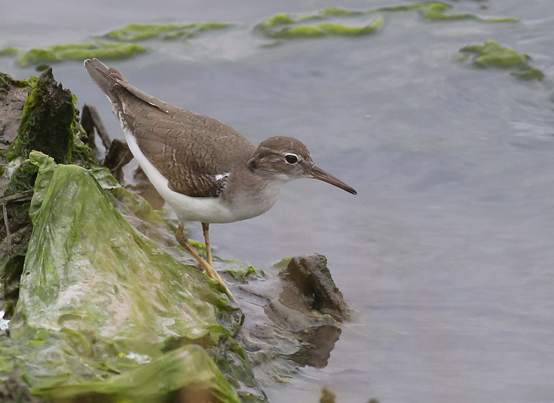 Beskrivelse: Plettet mudderklire i en hyppigt set positur: på jagt som en lille hejre kan den stå stille - parat til hug - i et stykke tid. Tit foregår denne "jagt" fra toppen af småsten eller forhøjninger. Den kunne således ses hos en fugl i Skåne forleden (der desværre var alt for langt væk til at få anvendelige fotos af). Sideløbende med dette ser man arten fouragere mere som Mudderklire, med lignende halevip, der dog måske afviger ved at være mere "opadrettede" end hos Mudderklire.