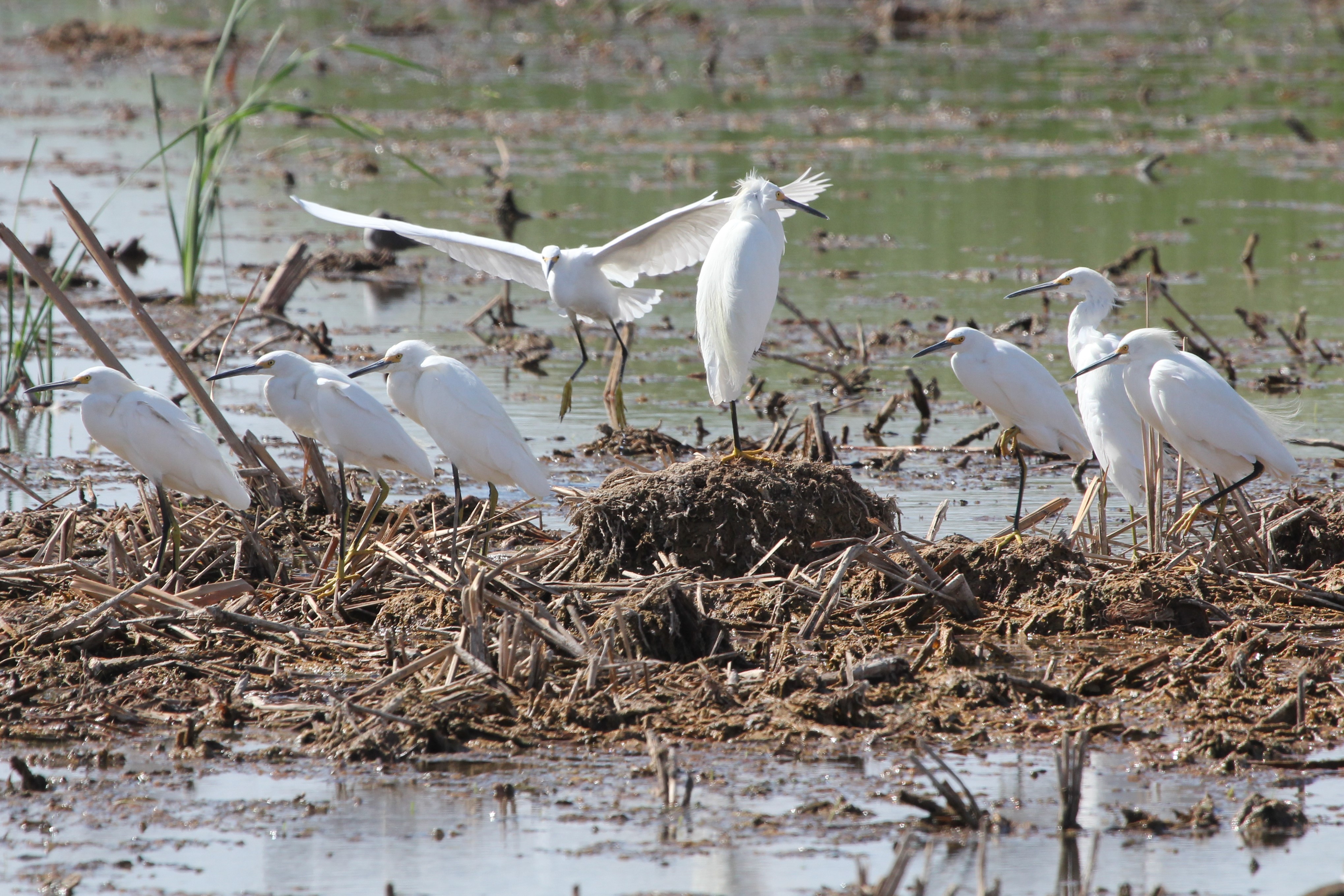 Titel: Amerikanske hvide pelikaner over Salton Sea