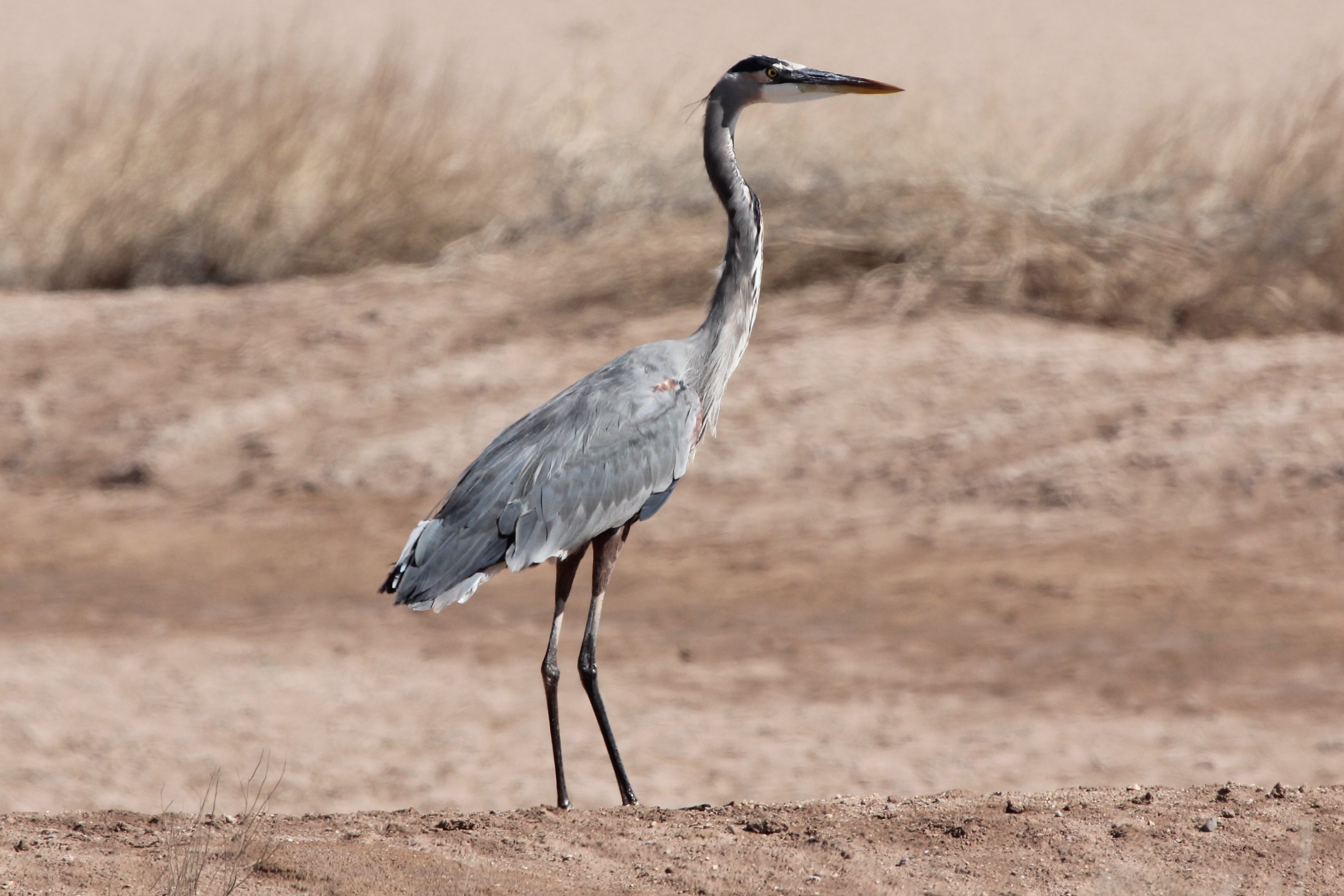 Titel: Stor blåhejre på tørt land 60-70 m under havoverfladen