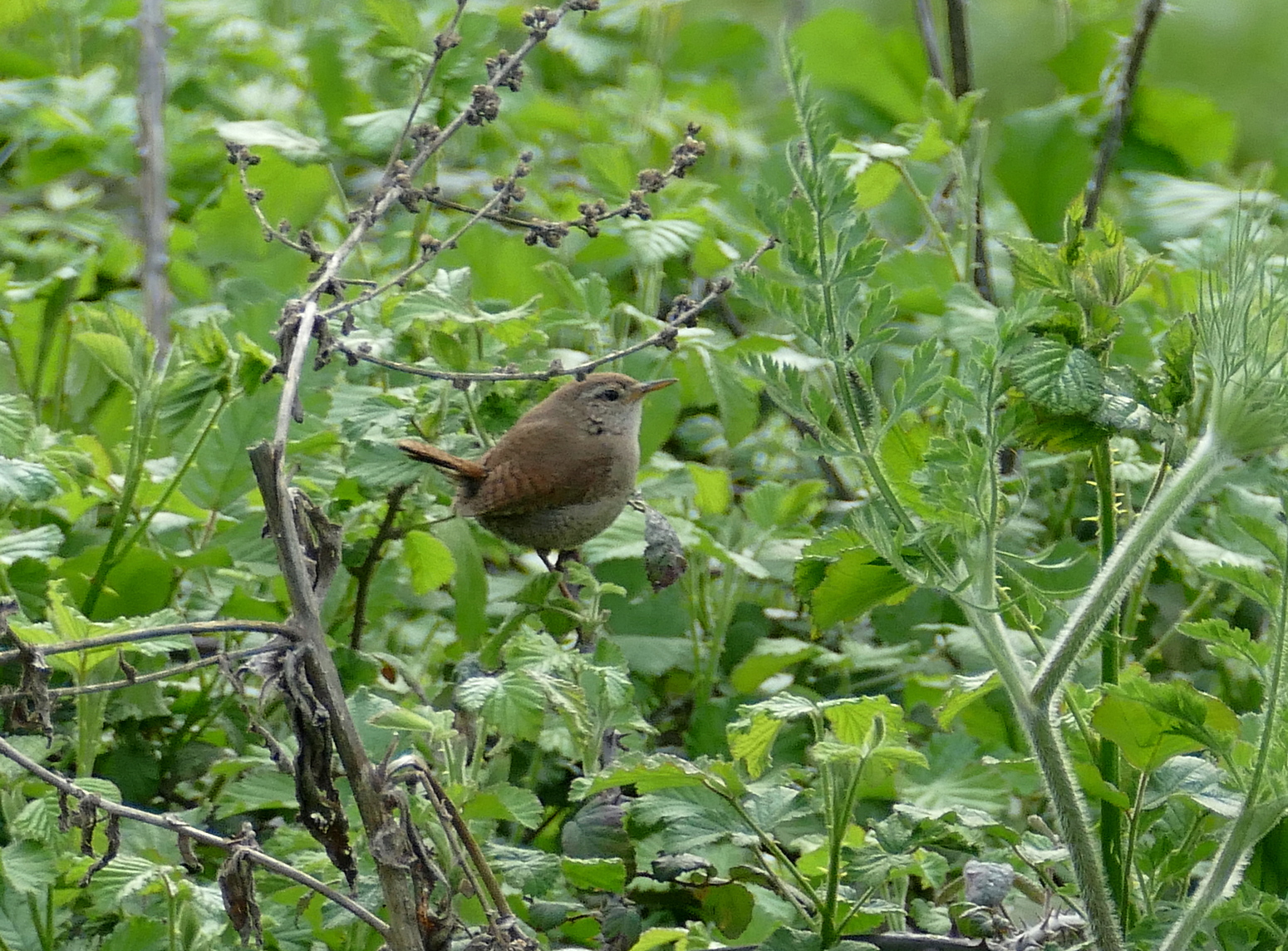 De mange brune/ afblegede fjer i vingen, kunne indikere, at det er en yngre (2K) fugl.