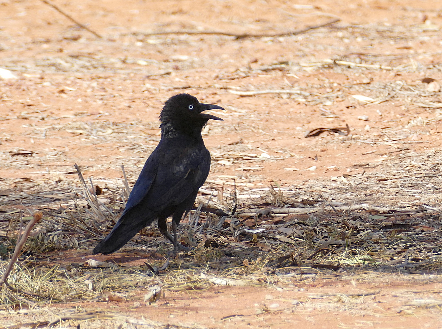 Beskrivelse: Little Crow er en almindelig og udbredt art i det indre, tørre Australien, hvor de ofte kan findes omkring de spredte byer langs hovedvejene.