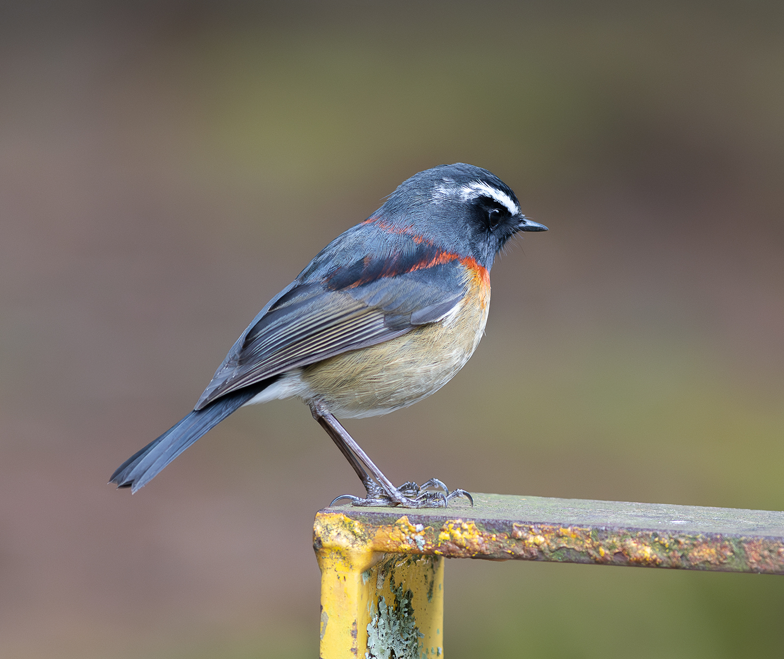 Beskrivelse: Collared Bush-Robin – Taiwan Blåstjerten – har nogle fine, blåligt metalliserende fjer,