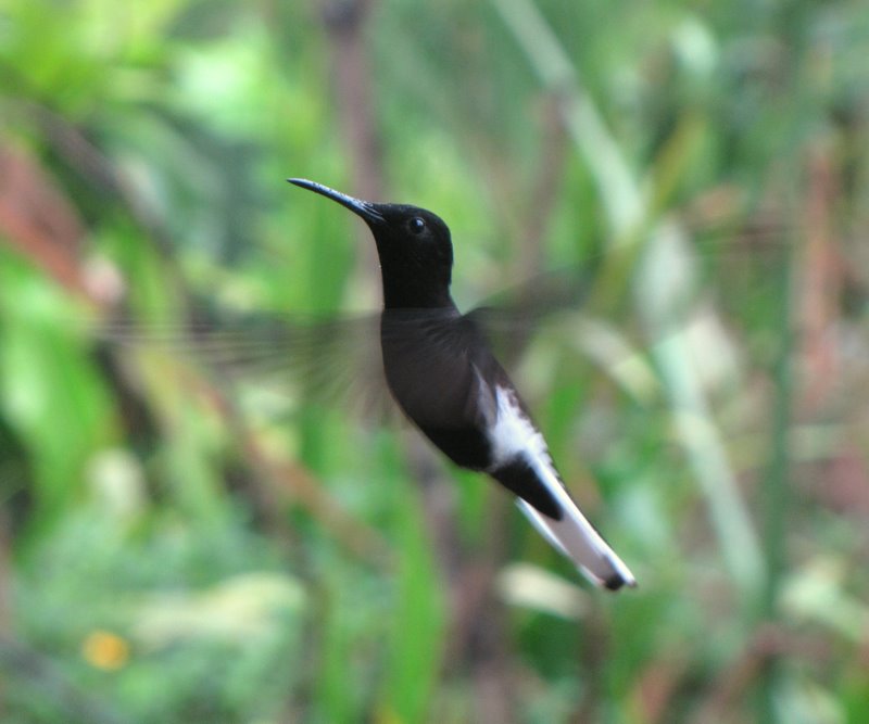 Beskrivelse: Brugte nogen timer på en regnvejrsdag med at sidde under halvtaget på fazenda'en og hygge med 30-40 kolibrier omkring sukkervandsautomaterne, og prøvede også lykken med lidt foto. På trods af (eller på grund af) det ringe lys kom der nogen lidt alternative kolibri-billeder ud af seancen.