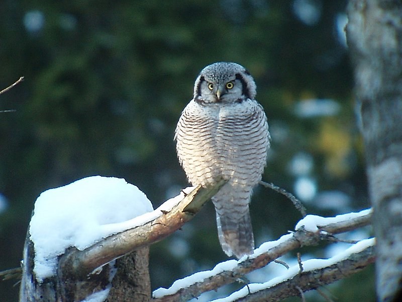 Beskrivelse: Uglen sad i det lille stykke skov, der går ud mellem de to parkeringspladser ved 8-vejskrydset.