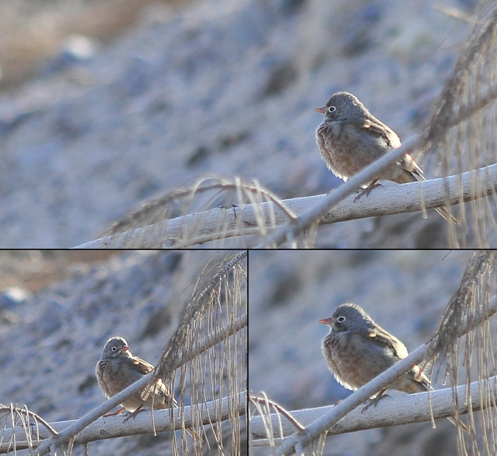 Hele historien er at vi var tre observatører, men at den ene stædigt hævdede at den havde gul øjenring! De to andre (incl. mig) var imidlertid sikre på at den var hvid og der blev brugt for lang tid på dette, således at vi "angreb" fuglen forkert og ikke fik fokuseret tilstrækkeligt på fuglens samlede karakterer. Helt ærligt så overvejede jeg bjerghortulan i felten, men fokus kom væk på grund af diskussionen om øjenringen, og jeg forsøgte at snige mig nærmere for at få den dokumenteret. Vi skulle nok have brugt tid på at se den i forskellige situationer og få samtlige karakterer beskrevet, men det skete altså ikke.