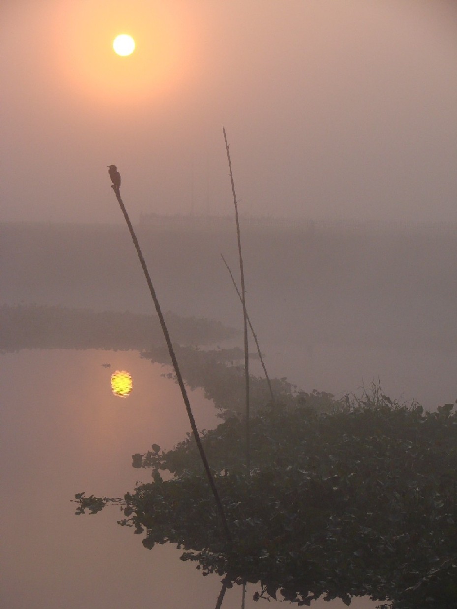 Beskrivelse: Early morning mist by the Bramhaputa river.