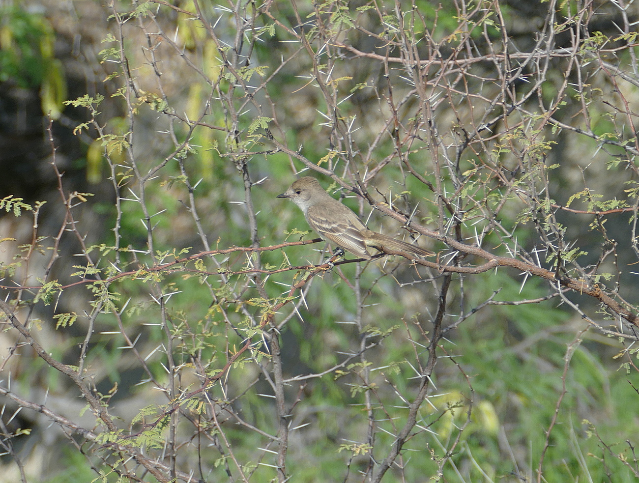 Beskrivelse: Ash-throated Flycatcher er en typisk Myiarchus-fluesnapper, som kan være superbesværlige at bestemme, fordi flere ret ens arter overlappe i udbredelsen.