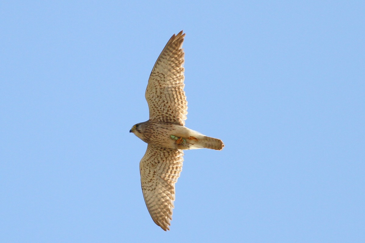 Hannerne er gennemgående grålige (som denne fugle) på oversiden med et tydeligt sort endebånd på vingerne, mens de fleste hunner forekommer varmt chokoladebrune med et ikke nær så tydeligt sort endebånd på vingerne ved det forårstræk, jeg har fulgt i flere år på Sicilien. Jeg er enig i, at det er en slidt adult fugl på billedet, men jeg har set enkelte fugle på Sicilien med ujævne vingebagkanter - ligesom musvåger kan have det i perioder med både juvenile og adulte håndsvingfjer af forskellig længde.
