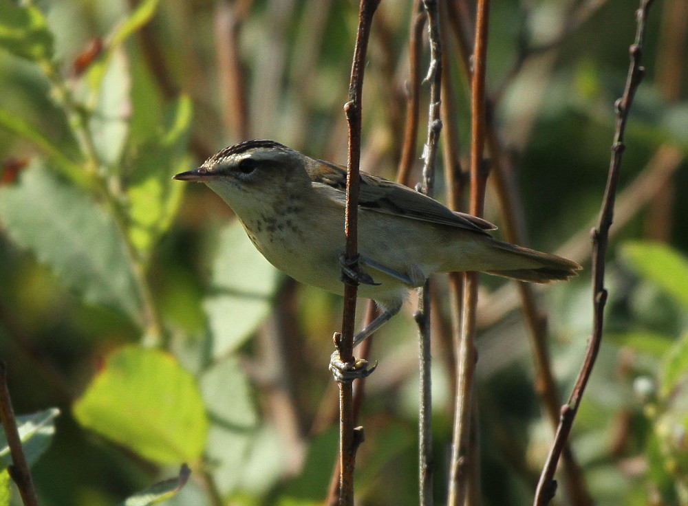 Beskrivelse: Sandsynligheden taler for sivsanger, men håbet om vandsanger strejfede. Pletterne på brystet og farverne på den del af oversiden, som kan ses, forvirrede. Desværre nåede jeg ikke at se fuglen forfra, og jeg har derfor ikke set om der er en lysere stribe på issen, som vandsangeren jo har.
