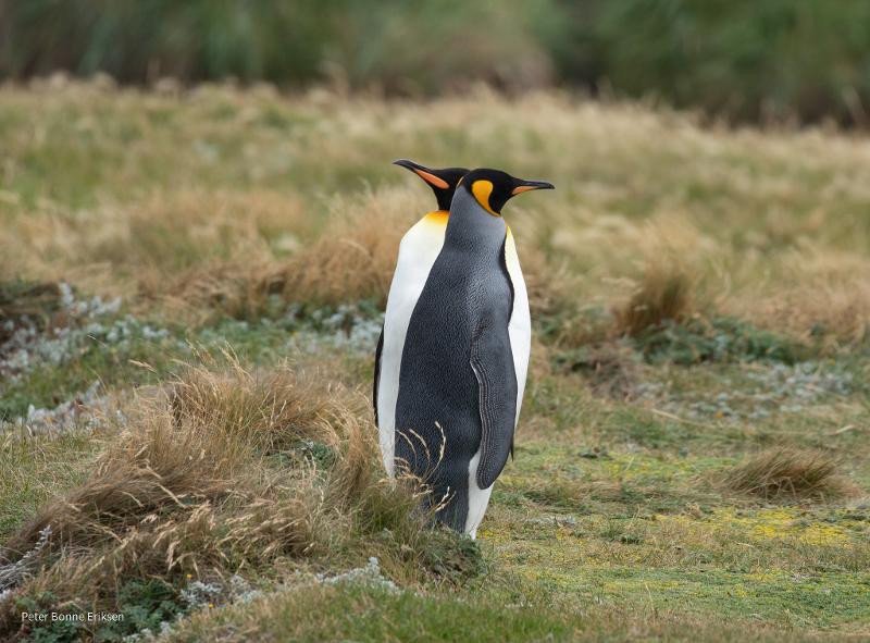 I de par vi så, var der altid tale om en hvid og en broget type,som her. Immature hanner har hvidt hoved og spredte hvide fjer i en ellers hunlignende dragt, men i par så allesete ud som disse to fugle.