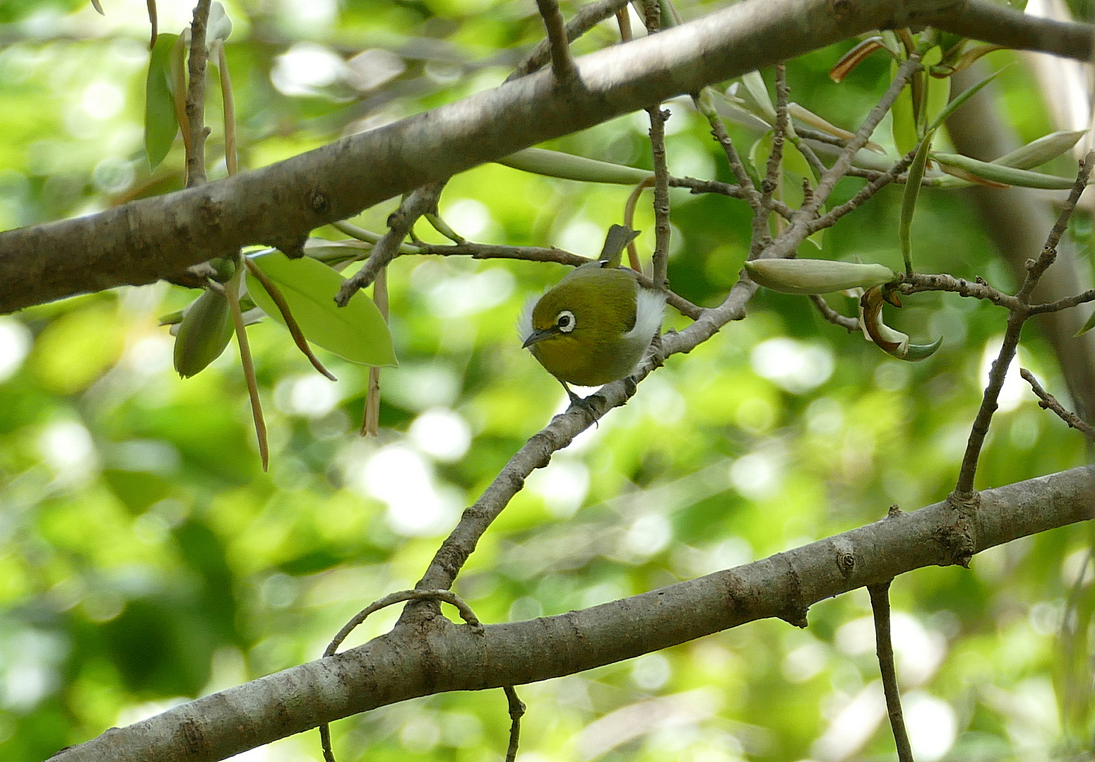 Titel: Small Lifou White-eye showing puffed out, white flanks.