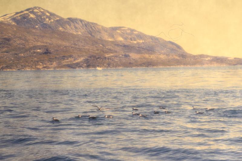 Beskrivelse: Sejltur ind i fjorden. Ca 1500-2000 rast og nok under fældning. Dagen før sås omkring 10.000 på 35 min trækkende ind i fjorden. Her fotos af ældre dias fra sejlturen. De meget store antal er ikke almindeligt, men i 1989 var der mange.