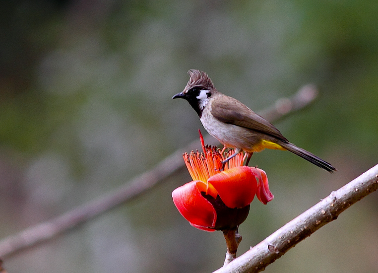 Billedet viser en han som gør sig til for hunnen til højre i billedet. Han pustede sig gevaldigt op og sang et par strofer for hans udkårne.