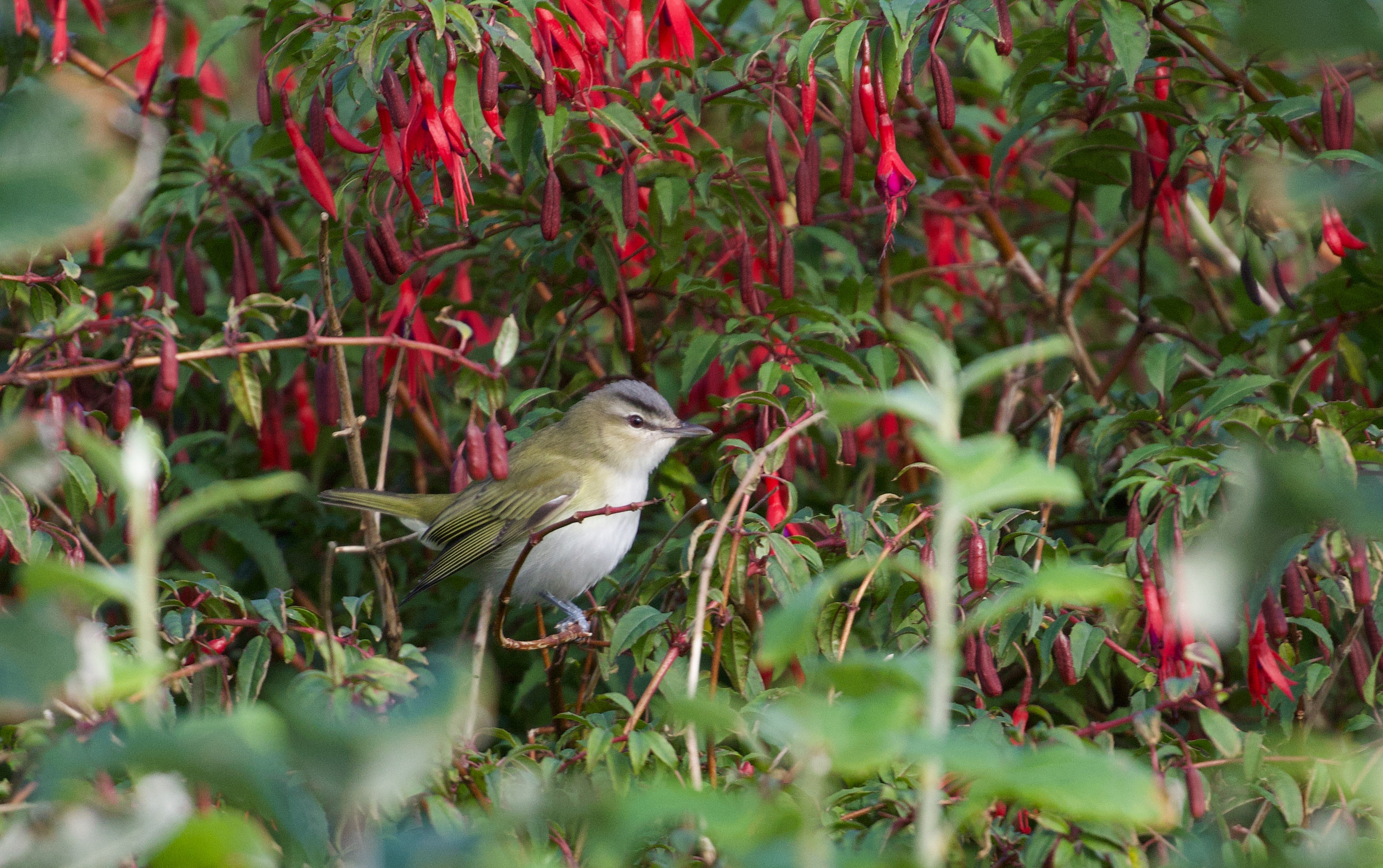 Beskrivelse: Nok en af de mest agressive piroler jeg nogensinde har oplevet. Ud over at den jagtede skovskader, så jagtede denne lille grønne pirol endda også en spurvehøg!!!