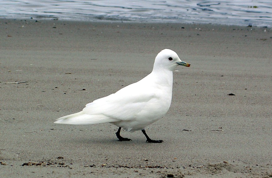 Beskrivelse: På min sommerferie til Svalbard var jeg så heldig at se en Ismåge. Den var ikke specielt sky, så jeg kunne komme ind på 3 meters afstand og tage billeder alene med kameraets 3x zoom. Den gik rundt uden for teltlejren og fandt småtterier i sandet.