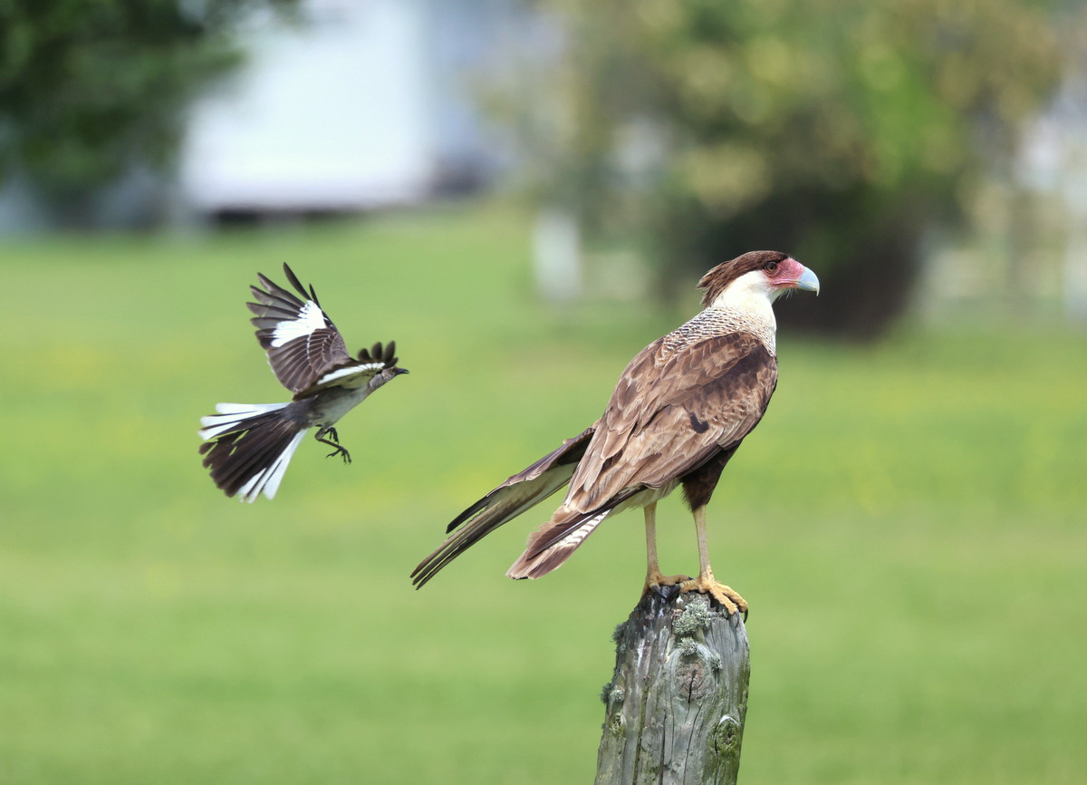 Titel: The Mockingbird clearly and persistant didn't like the Caracara to stay in this area
