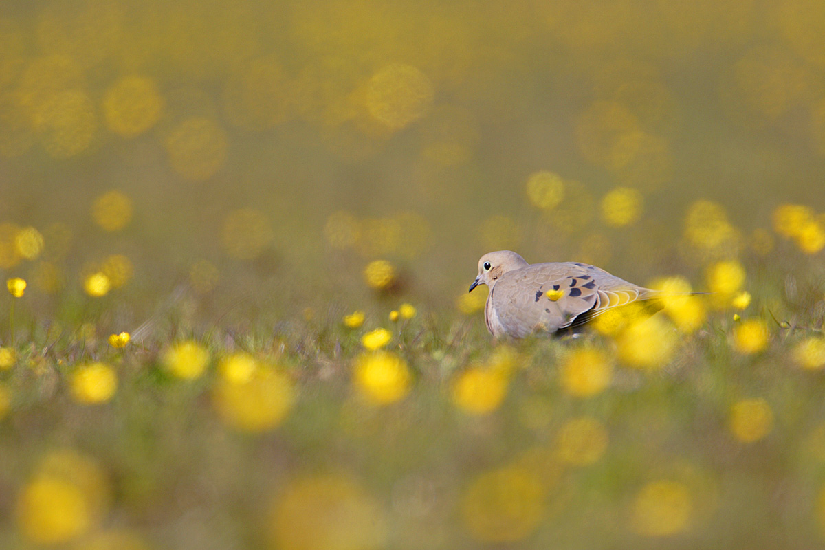 Et pragteksemplar af et billede, hvor perspektivet er genialt lagt i duens øjenhøjde, hvorved blomsterne får en genial rolle i billedet.